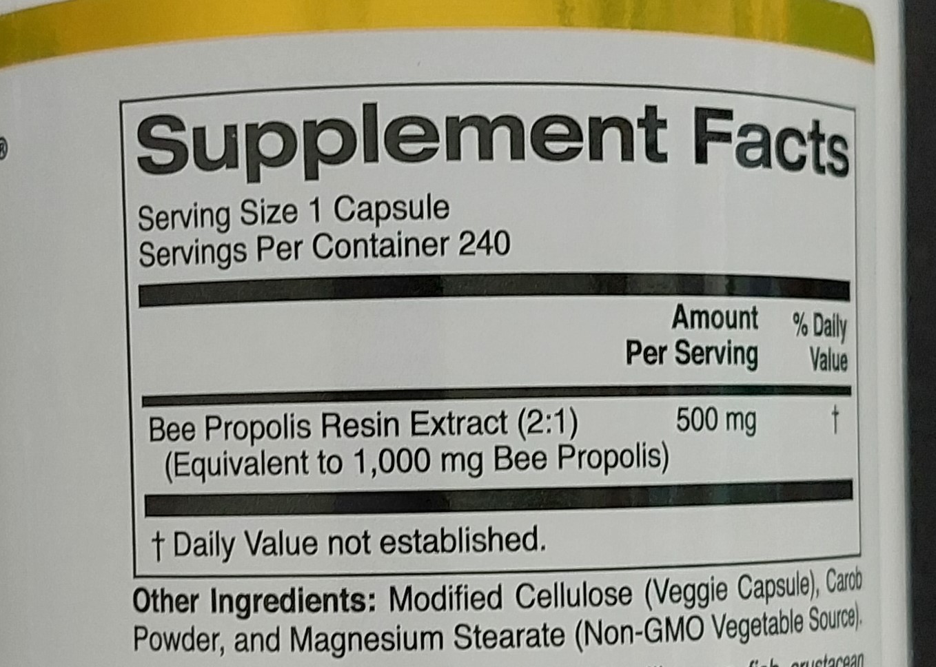 벌 송진 추출물 Bee Propolis Resin Extract (2:1) 500mg (1000mg 프로폴리스와 동등 Equivalent to 1000mg Bee Propolis)