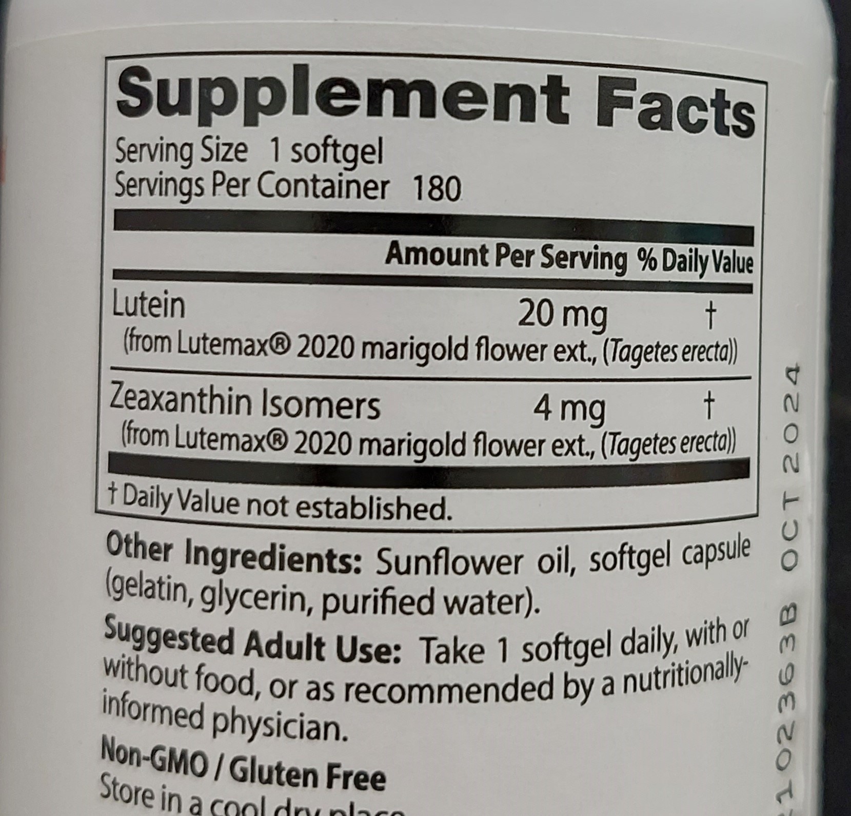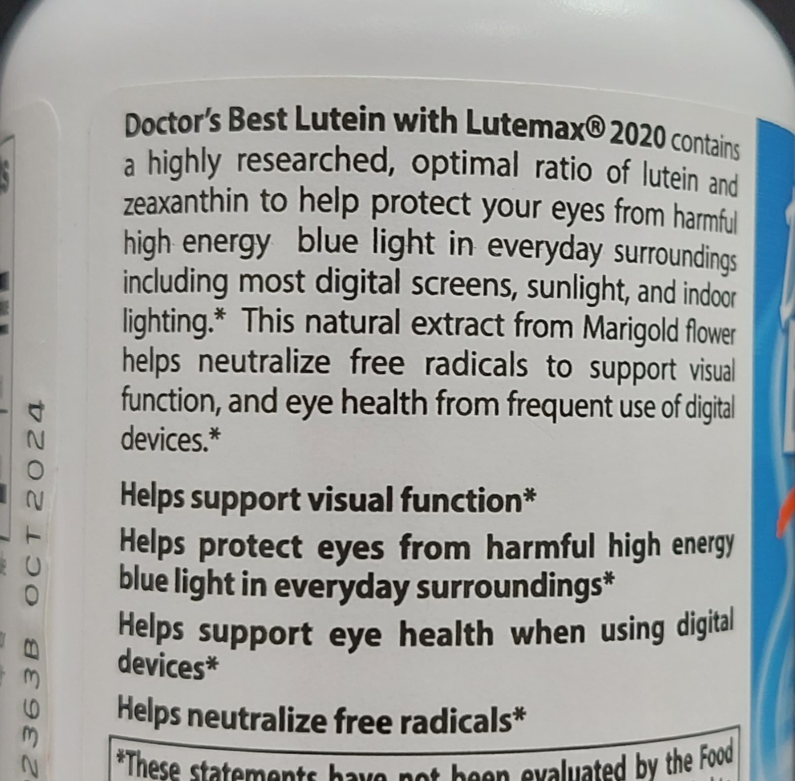 닥터스베스트 : 루테인 Lutein with 제아잔틴 포함 Lutemax 2020 (Lutein & Zeaxanthin)