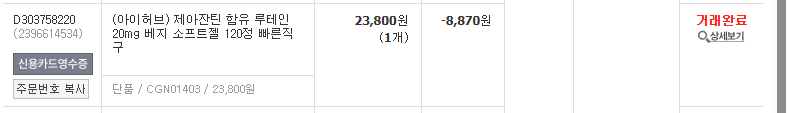 가격 확인하면서 들어가보니 제가 구매했던 캘리포니아 골드 루테인은 품절 상태이네요. 구매한지 한달도 안되어가는데요.