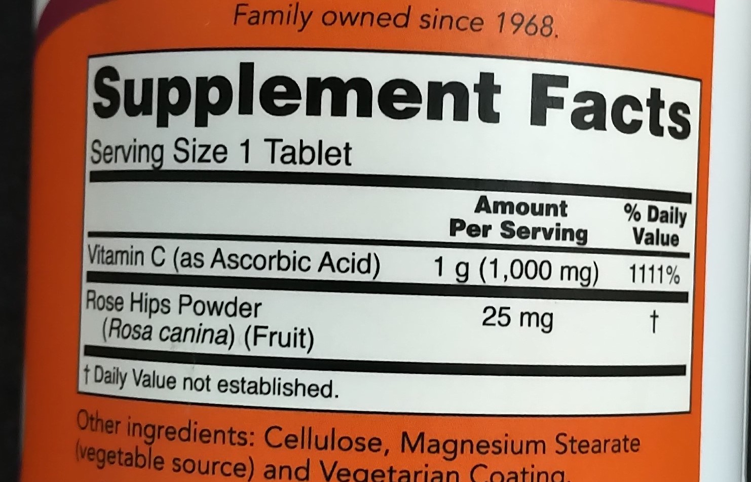 아스코빅산은 동일하고 1000mg도 동일합니다. 로즈힙은 25mg 함유되어 있네요