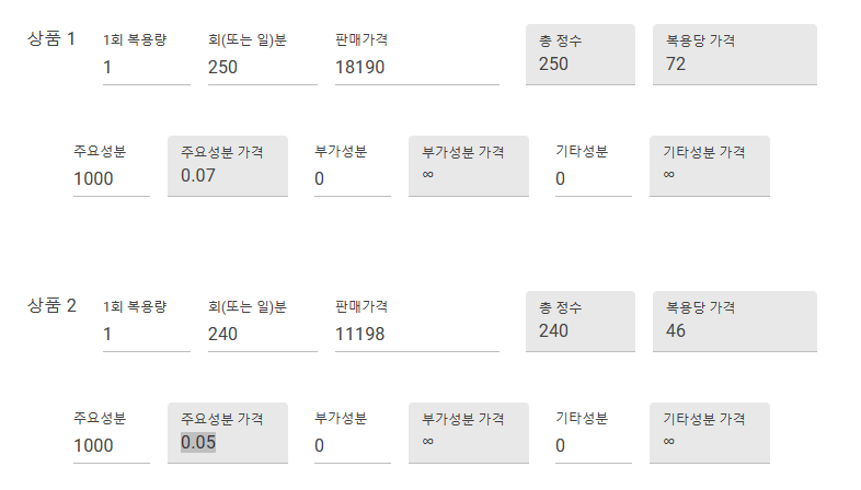 상품1이 나우푸드 쿠*에서 찾았고, 상품2가 캘골 제품이고 아이**에서 비교했습니다. 그런데 오늘은 이상하게 1000mg 짜리가 품절이네요. (세일이라 품절이 된 것일 수 있으니 참고만 하시면 될 듯합니다)