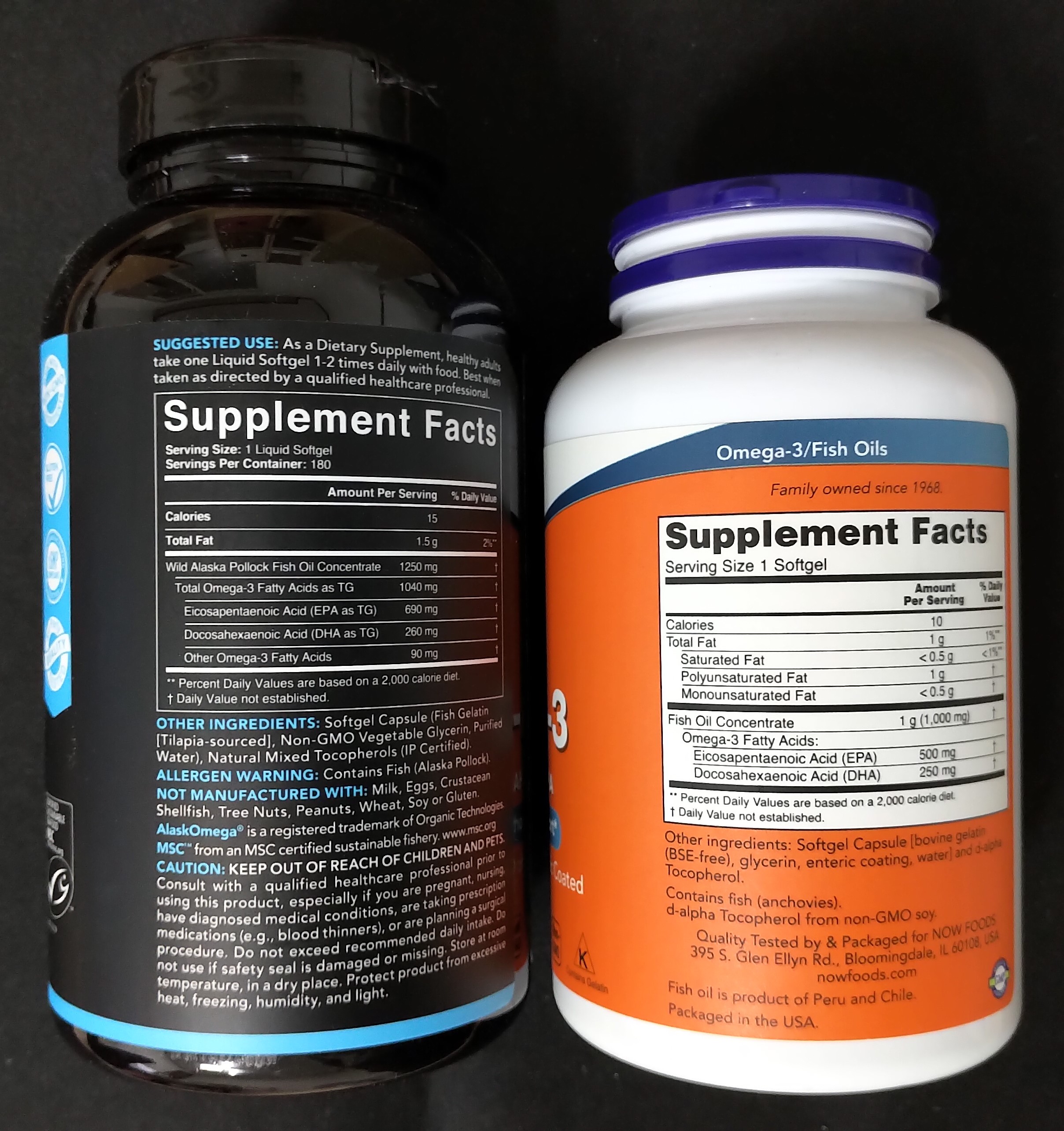 전글의 노르딕 등 세 제품을 비교해보면 우선 복용량 기준으로는 노르딕 제품이 DHA가 훨씬 많았습니다. 거의 두배에 가까운 (단가계산 부분은 다른 글에서 정리할게요) 용량이네요.